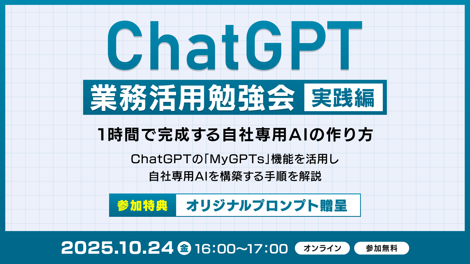 そこで、今回のChatGPTビジネス活用勉強会では、一切エンタメ要素や個人利用のテーマを排除し、全編ビジネスユースでの話を展開します。さらに、ChatGPTの「MyGPTs」という機能を使って、勉強会中に、ロープレAIや社長クローンを構築する手順も解説します。